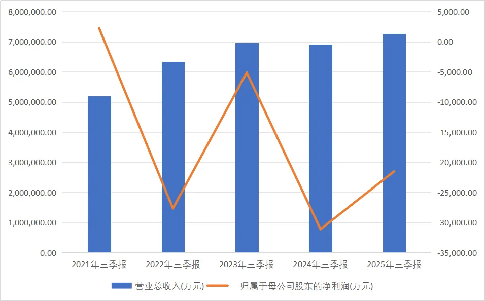 2025年前三季度实现营业总收入726.43亿元,同比增长5.21%;其中第三季度单季营收达280.84亿元,同比大幅增长70.72%。